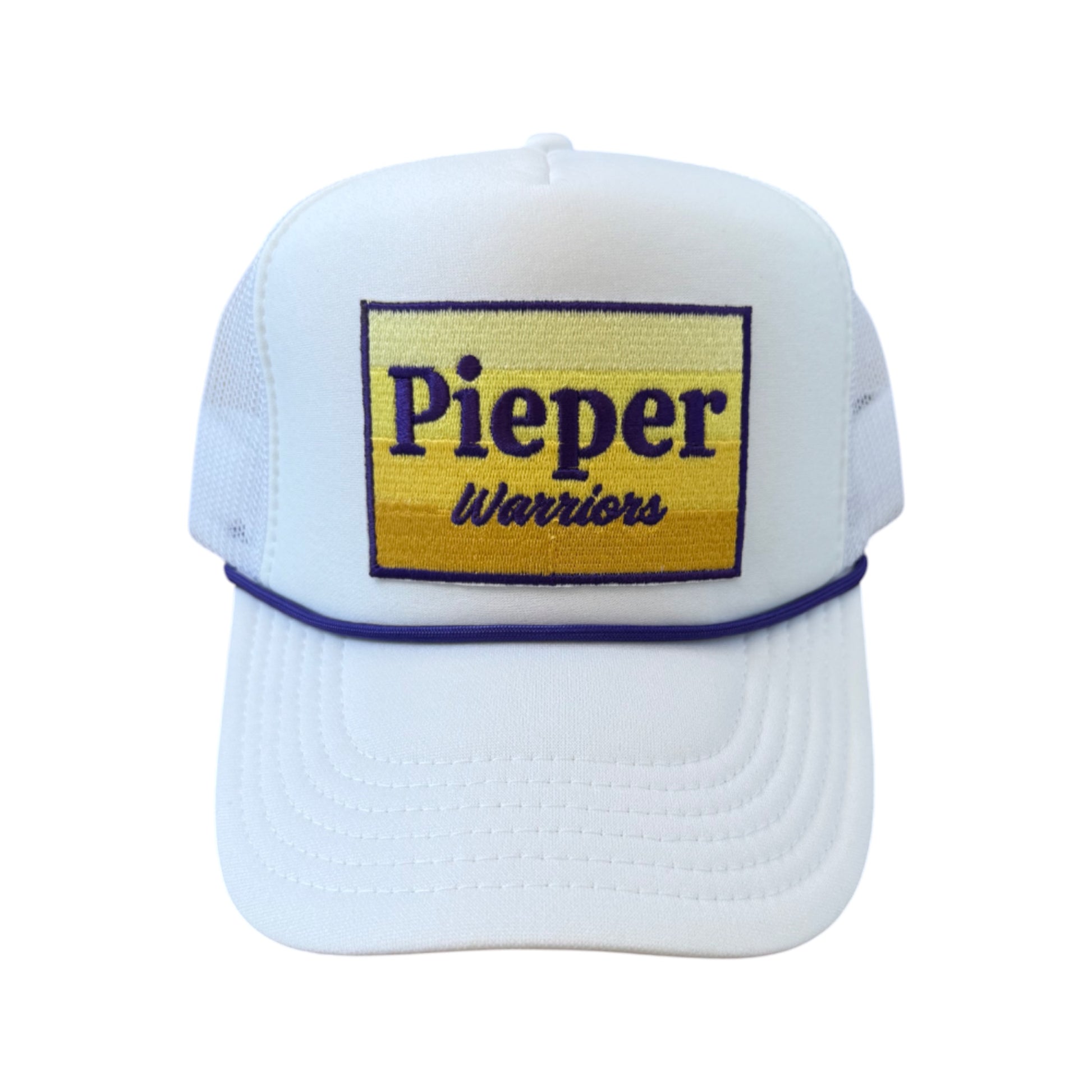 Stand out in bold school spirit with this foam front trucker hat featuring a vibrant gradient “Pieper Warriors” patch. The retro foam crown gives it a classic throwback vibe, while the breathable mesh back keeps it cool and comfortable. Perfect for game days, everyday wear, or anywhere you want your Warrior pride to pop.