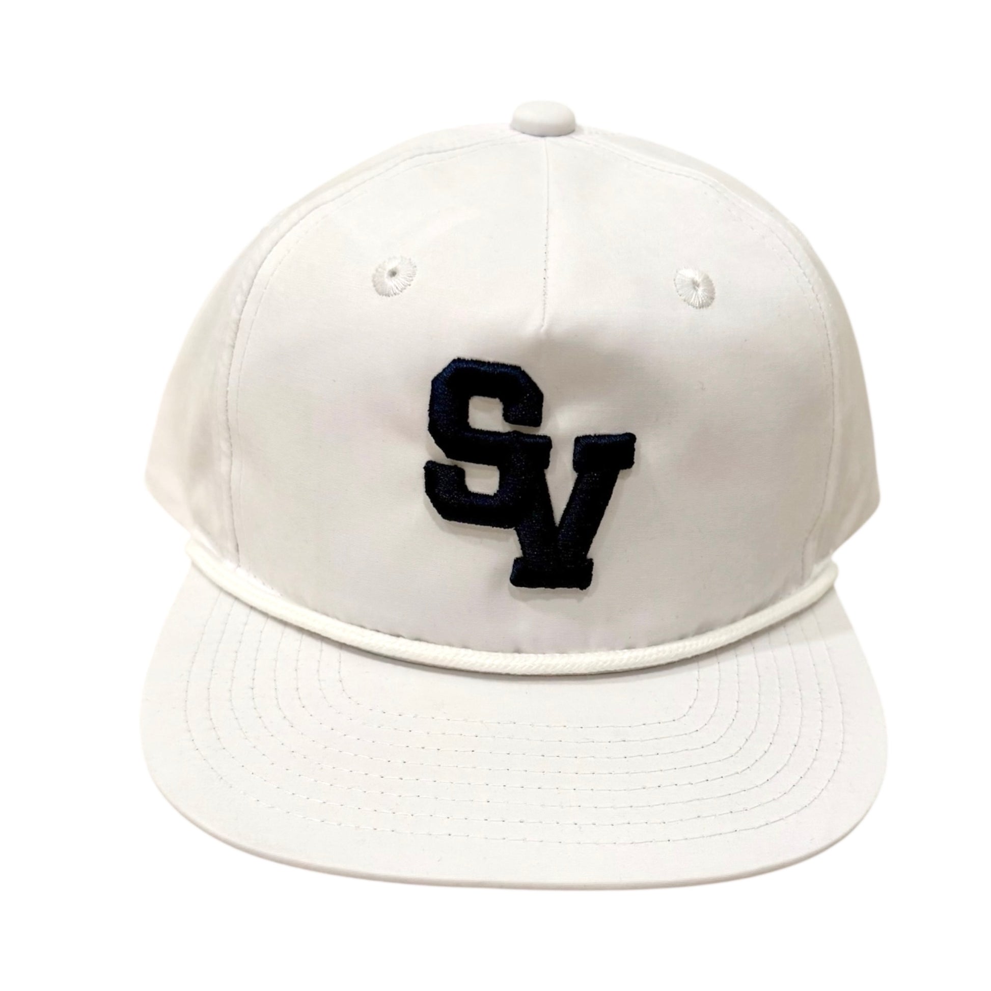 Classic meets bold. This white flat-bill “grandpa” style snapback features a crisp white rope detail and the iconic SV logo in raised 3D puff embroidery. Built with an adjustable snapback closure and structured fit, it’s the perfect mix of vintage edge and modern school spirit.